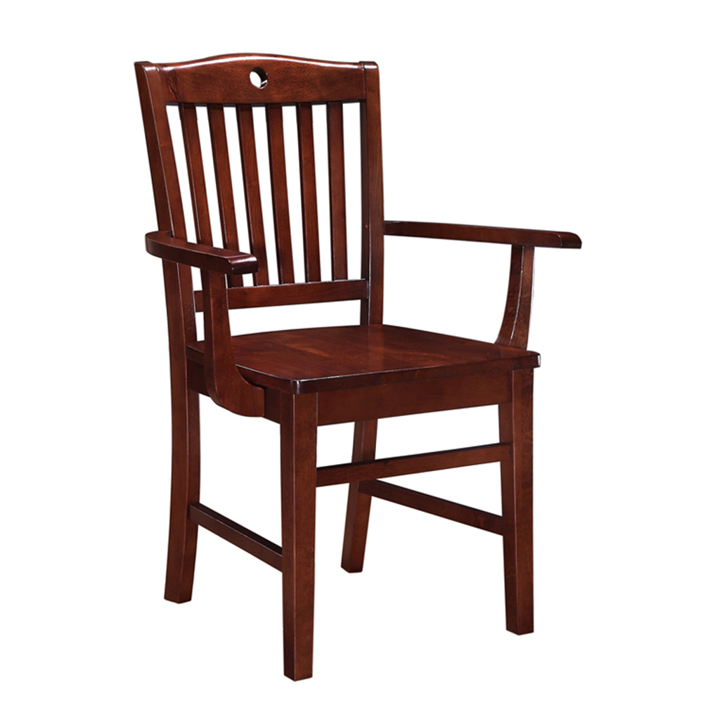 This slat back hardwood chair is perfect for seating in any industry. Its polished old school look adds a classy appearance to your dining area, office or even dorm room. The solid hardwood and reinforced legs and stretcher give this chair a sturdy frame, making it ideal for heavy duty applications.
