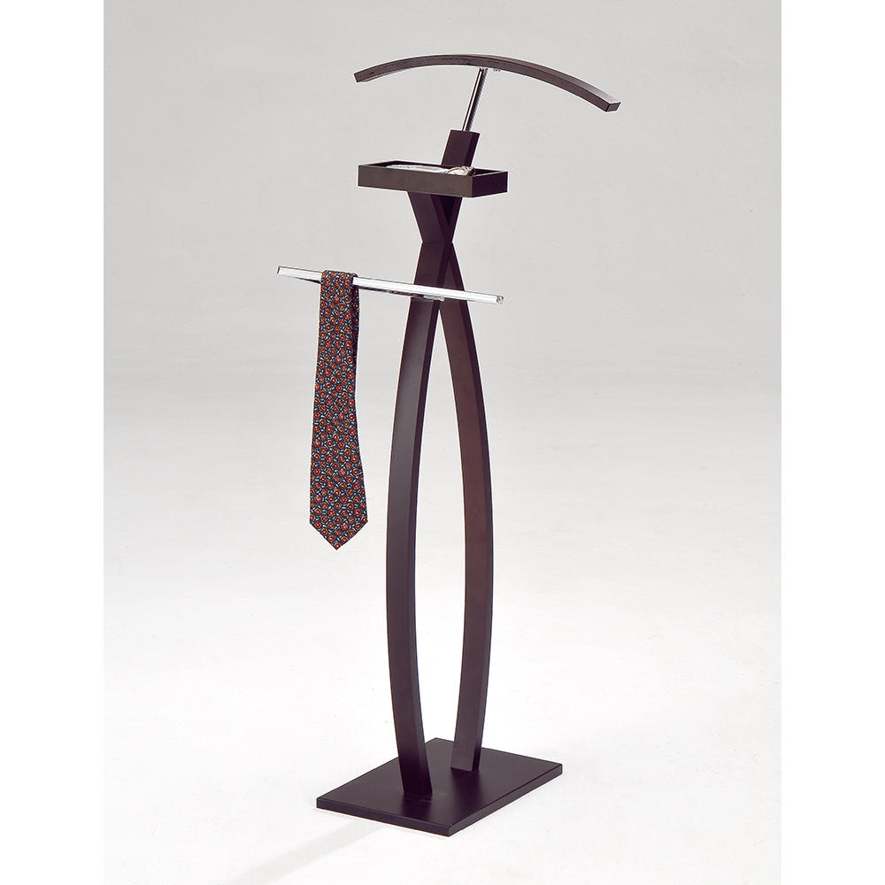 Add style and functionality to your bedroom or walk-in closet with the stylish Laurent Curved Walnut Valet Stand. The sturdy hardwood construction has a rich walnut finish that enhances any decor.