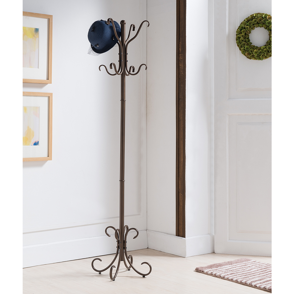 The Samarez Coat Rack features elegantly curved hooks for traditional style. 8 hooks offer plenty of room for hanging space, and the strong metal construction in a copper finish brings a classic look to your space.