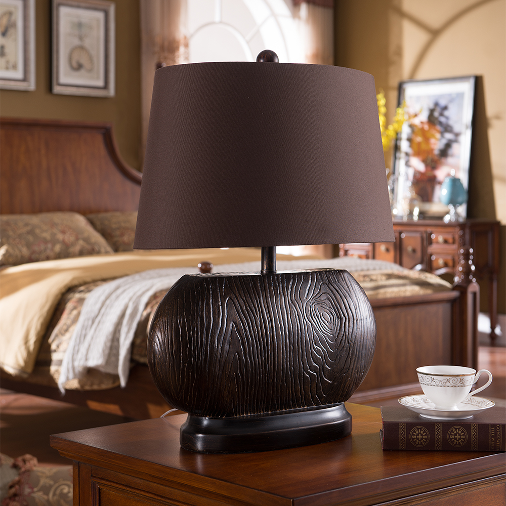 Decorate your space with a set of traditional table lamps that have an espresso finish on the base and matching dark brown lamp shades. These lamps use standard bulbs of up to 100 watts and have an on/off line switch for convenience.
