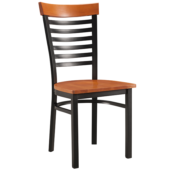 The Steinbeck Dining Set perfectly blends all welded steel with solid wood for beautiful style and durable strength. The tabletop, headrest and seat, constructed of solid wood in a polished natural finish, offer innate splendor, while the steel frames, base, and braced chair legs ensure quality and endurance.