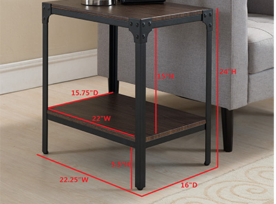 T1107 End Table 22"W x 16"D x 24"H Walnut/Black