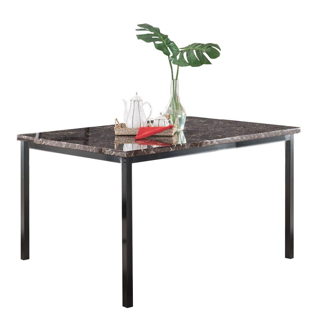 Bring a stylish mainstay to your dining room with the sleek construction of the Bayou durable metal dinette set. The table features a rich wood & veneer top in a marble finish composed atop a sturdy black metal frame for a mainstay of polished elegance, while our matching Bayou black chairs offer vinyl-upholstered seat cushions giving maximum comfort.